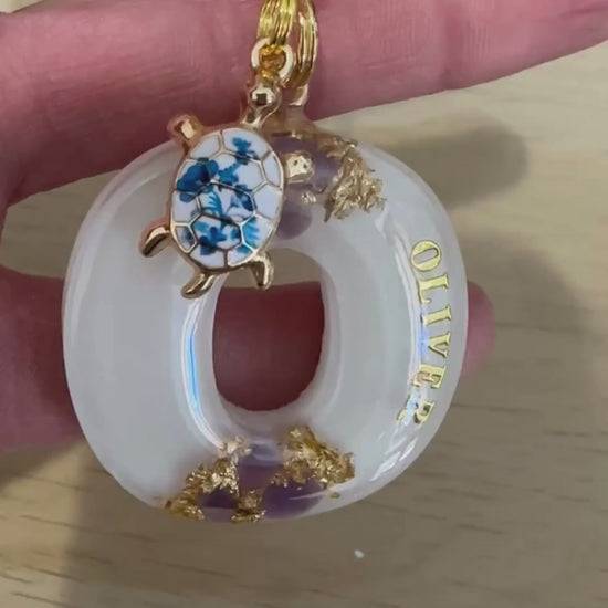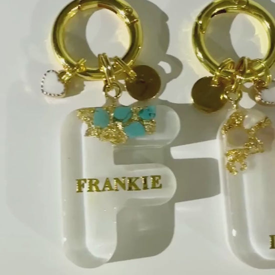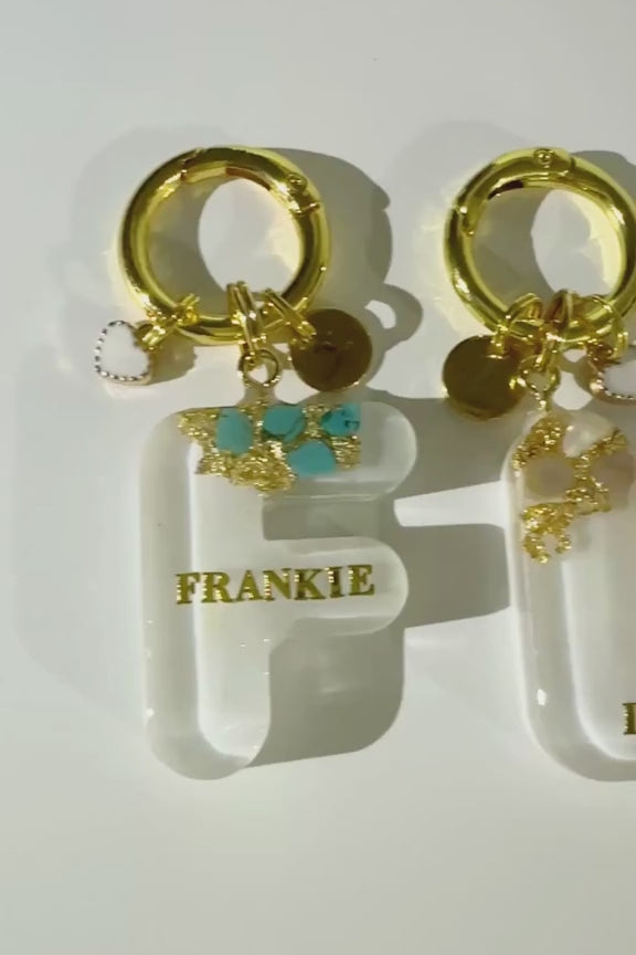 The stunning Signature Pet ID Tag is handcrafted with a selection of stunning turquoise blue stones, genuine amethyst crystal, and shell pieces and is set against a backdrop of modern resin colors accented with shimmering gold or silver flakes. Each letter is a miniature work of art, adding a touch of elegance and personality to your pets collar.