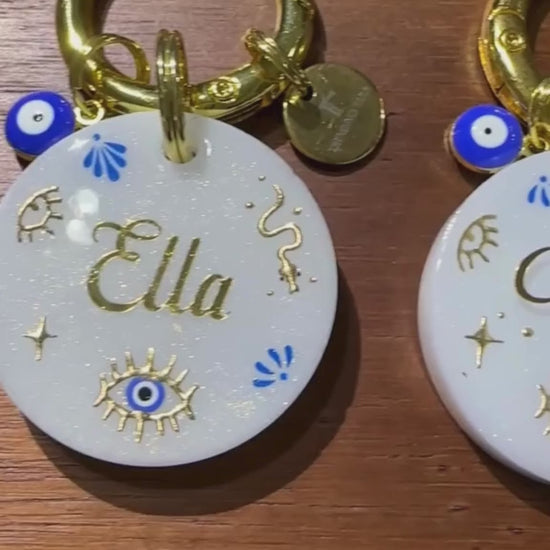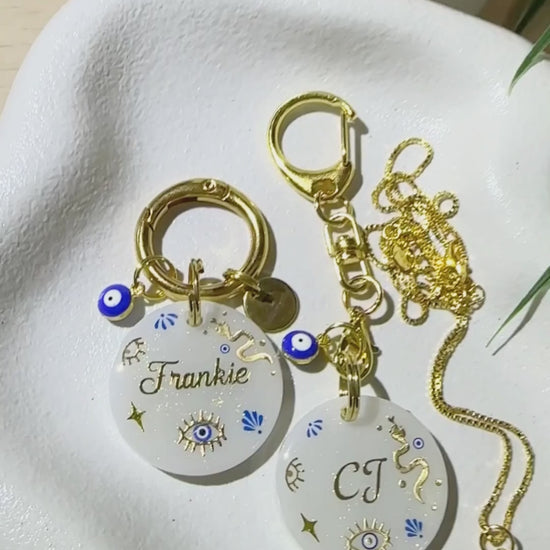 This luxury Evil Eye pet tag blends style, symbolism, and protection. Designed to keep you and your pup safe and stylish, every detail of this piece radiates good energy and modern elegance.