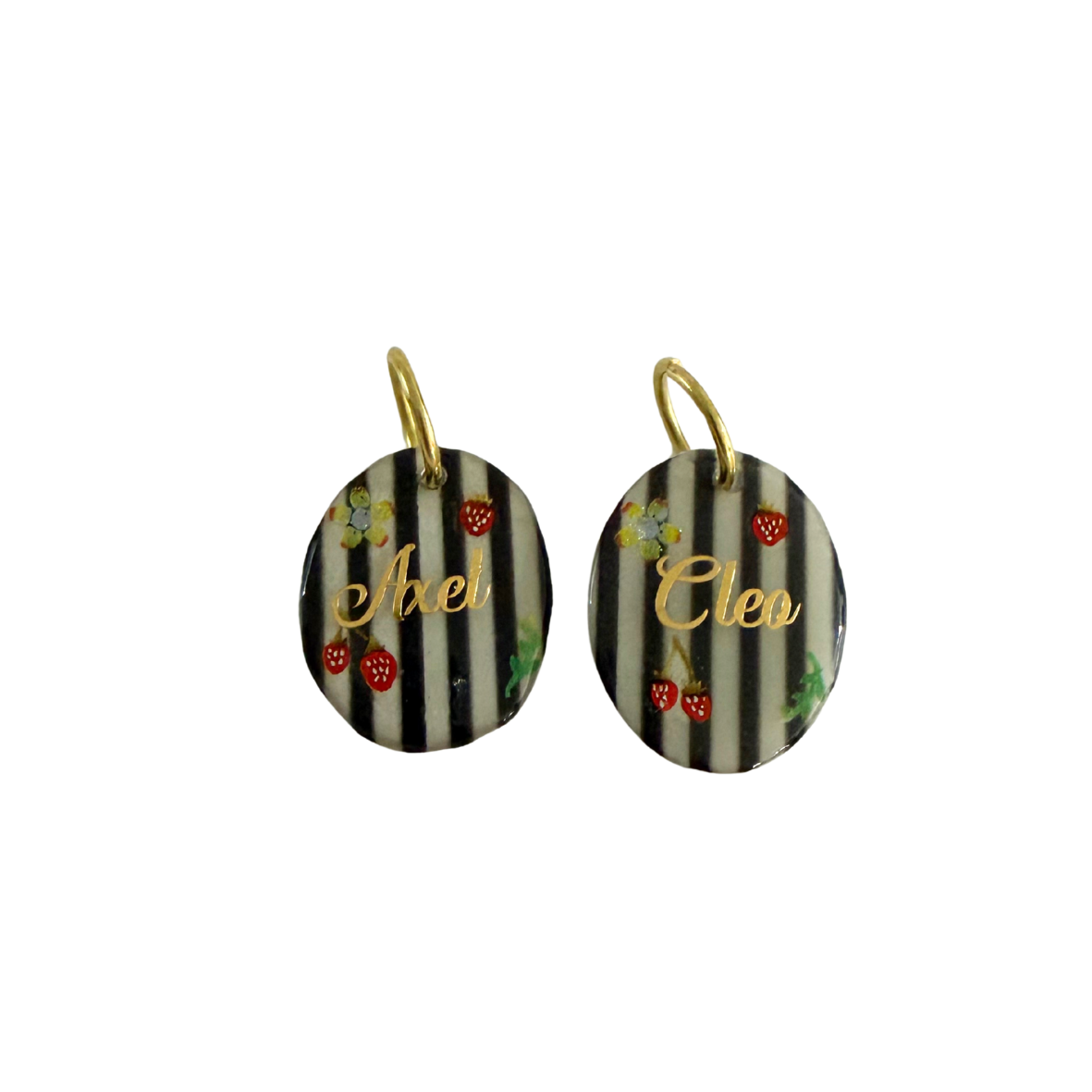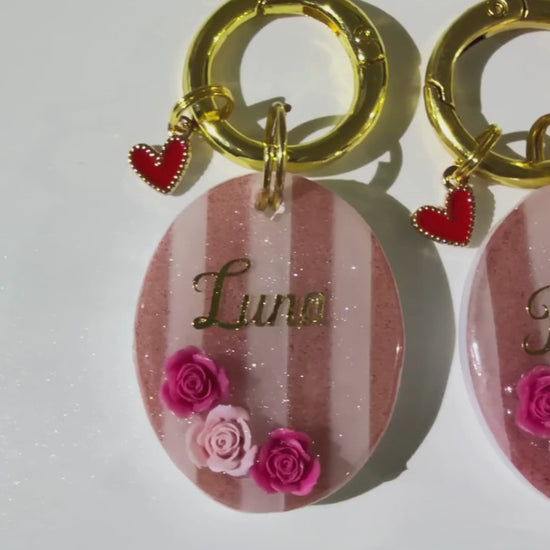 Inspired by effortless Parisian style, Parisian Love Tags are designed for pets who wear love beautifully. Featuring chic striped detailing, romantic floral accents, strawberries and personalised with your pet’s name or initial, each tag is a timeless keepsake with a luxury finish.