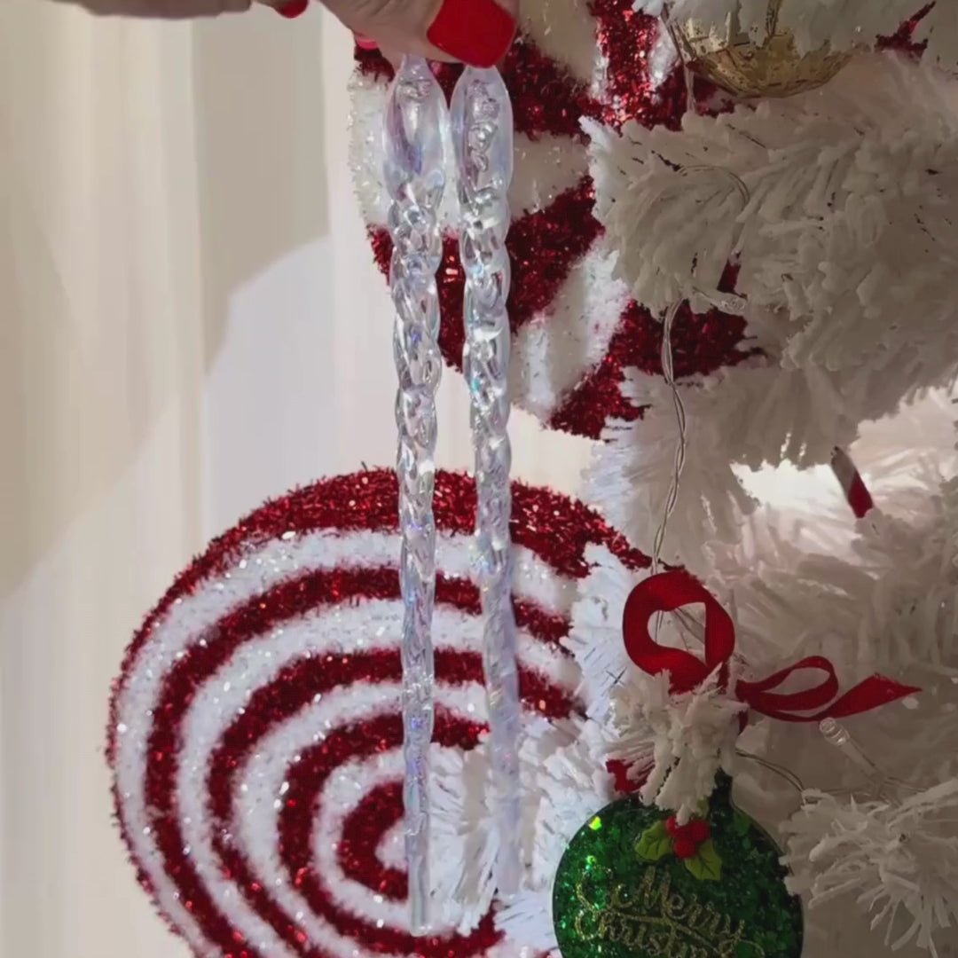 Add a touch of magical sparkle to your Christmas tree with the Frosted Twist Icicle Ornament and Crystal Snowdrop Icicle Ornaments
